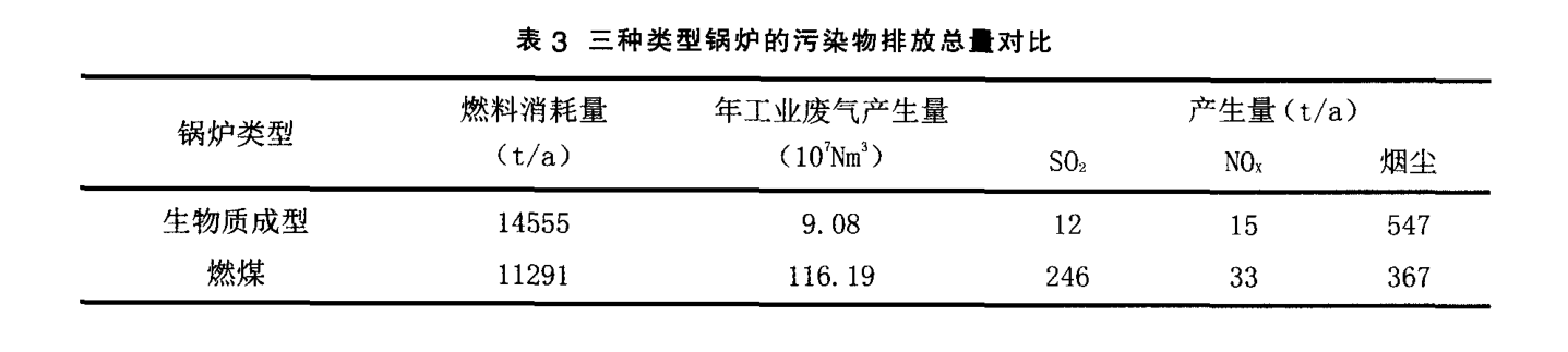 從污染物的產(chǎn)生總量上分析 。生物質(zhì)成型燃料鍋爐除煙塵產(chǎn)生量略高 .約為燃煤鍋爐的 1.49 倍外 ,二氧化硫 、氮氧化物、煙塵產(chǎn)生量分別相 當于燃煤鍋爐的0.05 、0.45 倍。綜上所述 .生物質(zhì)成型燃料鍋爐污染物產(chǎn)生量總體較低 ,得益于生物質(zhì)燃料的硫含量低 ,二氧化硫的產(chǎn)生量顯著減少。
