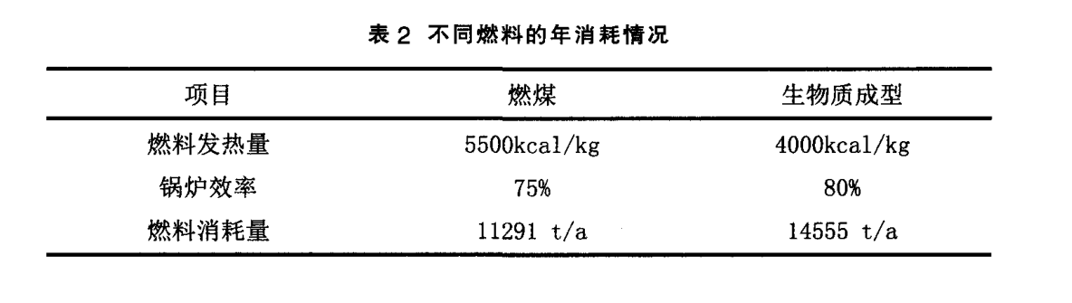 鍋爐排放 的大氣污染物主要包含煙塵、氮氧化物 、二氧化硫等。以10t/h ,額定蒸汽壓力 1.25M Pa的鍋爐 .日運行 24h 。年運行 300 天的工況為例。燃煤熱值參考《環(huán)境保護實用數(shù)據(jù)手冊》動力煤取值5500kcal/kg . 木 質(zhì) 生 物 質(zhì) 成 型 燃 料 熱 值 按4000kcal/kg 計。鍋爐熱效率分別取值 75%、80%。如表 2 .生物質(zhì)鍋爐的熱效 率雖然略高 .但 由于燃料的熱值較低 .綜合起來燃料年消耗量約為燃煤 的1.28 倍。