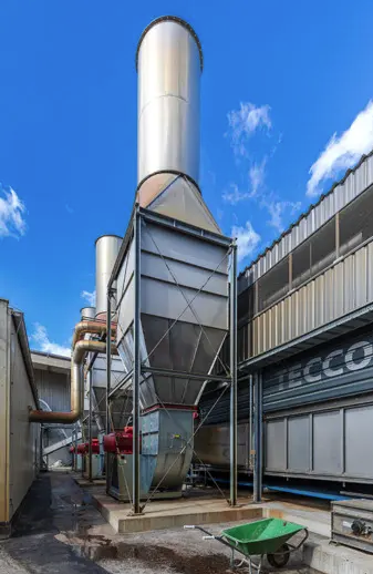 “鍋爐房”配有熱交換器,烘干機(jī)排氣從位于鍋爐房后面的烘干機(jī)排出。