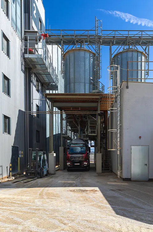 有蓋的袋裝倉庫可儲存約1300噸顆粒。有趣的是,意大利的袋裝顆粒與奧地利的散裝或袋裝顆粒完全相同,只是品牌不同。